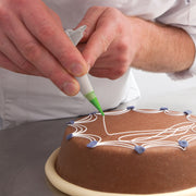 This small piping bag with extremely flexible firm-grip multi-layer film in combination with a resealable nozzle allows nearly everyone to write ‘calligraphy’ on cakes with fluid fillings.